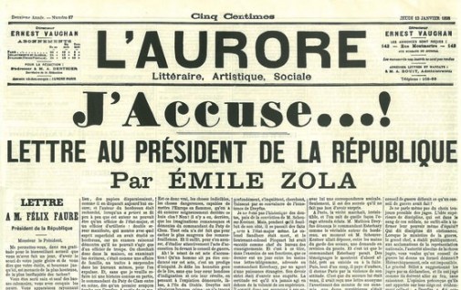 Le 13 janvier 1898, Émile Zola publie une lettre ouverte au président de la République dans L’Aurore, nommée « J’accuse». Dans ce texte calomnieux qui occupe la première page du quotidien, le célèbre écrivain dénonce les manigances qui ont entouré le procès du capitaine Alfred Dreyfus. Ce dernier, accusé d’avoir livré des secrets militaires à l’empire allemand, a été arrêté quatre ans auparavant. Après un procès, où le dossier d’accusation contenait des pièces falsifiées, Dreyfus a été reconnu coupable d’ espionnage au profit de l’Allemagne en décembre 1894 par un conseil de guerre et envoyé au bagne à l’île du Diable en Guyane.