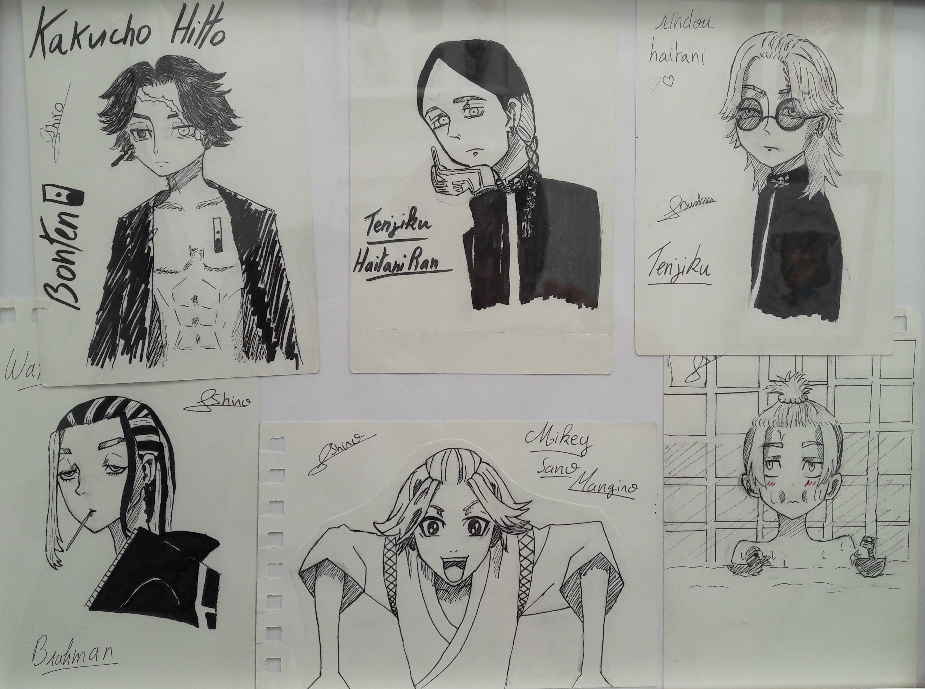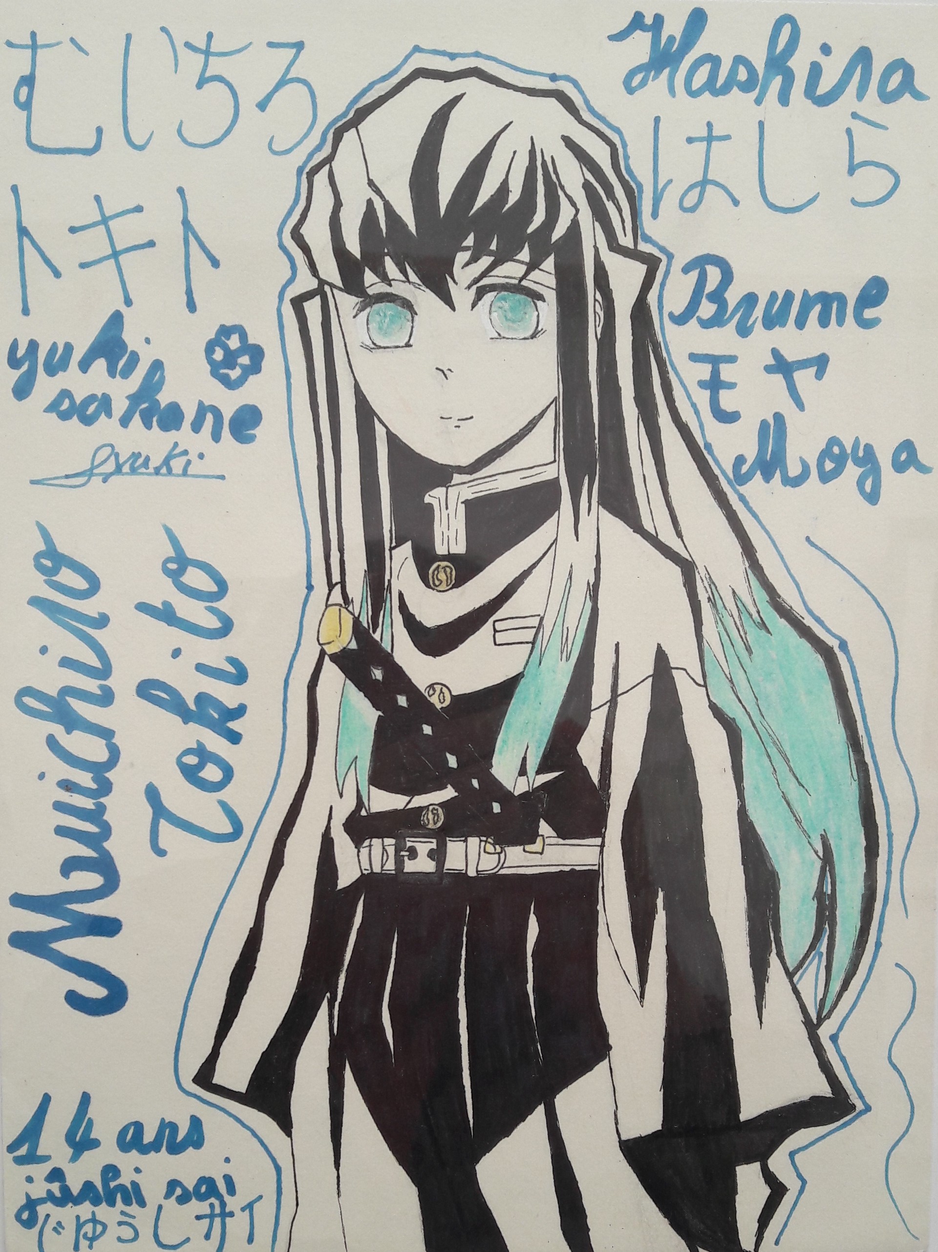 Le nom de l’expo fait référence au manga “demon slayer” écrit et dessiné par Koyoharu Gotōge. Mais ici, on ne tue pas des dessins, on les regarde juste. On peut y voir deux murs remplis de dessins encadrés des trois artistes et de leurs biographies rédigées par Mme Léporati ; ce qui permet d’en apprendre un peu plus sur la vie des exposantes, leur parcours, leurs intérêts ainsi que sur ce qui les passionne.