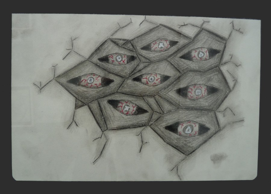 Au niveau technique, du noir et du gris surtout, quelques touches de rouge, un peu de bleu nuit… Il mélange plusieurs outils : crayons gris, stylo, feutres à alcool, encre. En fait, quand il dessine, Pierre crayonne d’abord sur la feuille en laissant courir son imagination, puis le dessin se construit peu à peu. Le résultat est toujours une surprise.