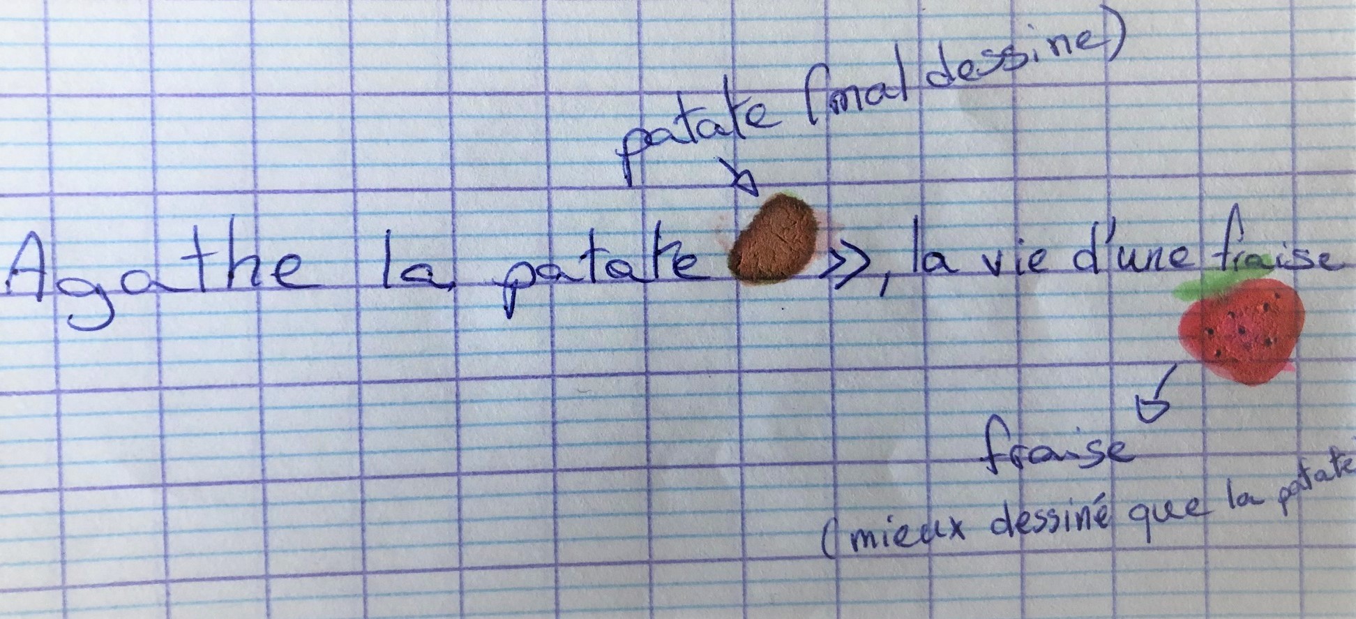 On a regardé une vidéo touchante sur la vie d’une fraise qui finissait gâchée, du champ à la poubelle parce que la famille qui l’achète oublie la barquette dans le frigo, et l’histoire d’Agathe la patate qui devient une frite. Il y a du gaspillage à la production (des patates qui ne sont pas ramassées), quand on trie les plus belles pour les mettre dans les cageots, quand on fabrique les frites, quand on les transporte si le camion a des problèmes de froid, au supermarché parce que certaines poches ne sont pas vendues, et Agathe finit à la poubelle parce que la personne qui l’a dans son assiette n’a plus faim !