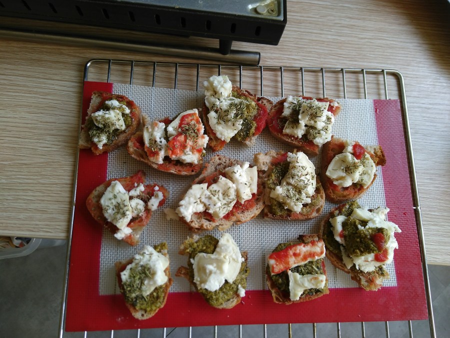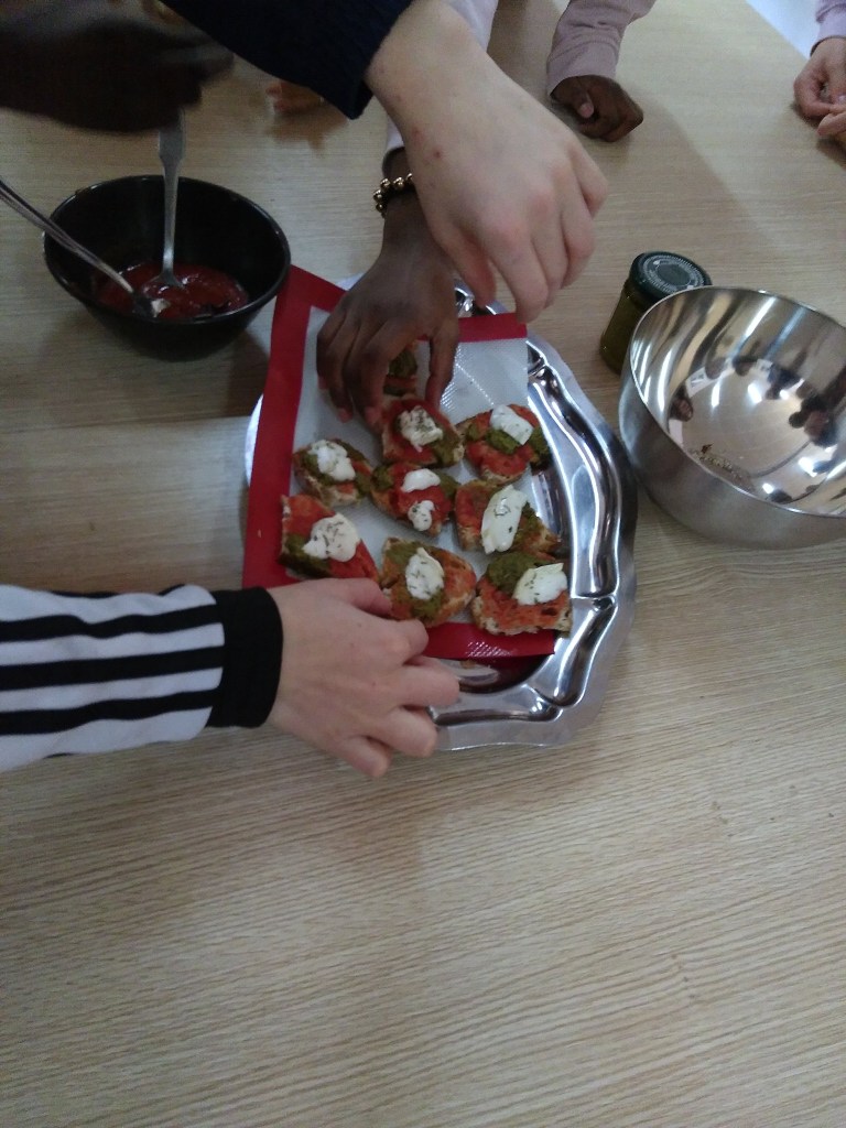 Ensuite on a fait une sorte de mini-pizza avec du vieux pain, et c’était trop bien ! Pour finir nous l’avons dégustée et savourée.