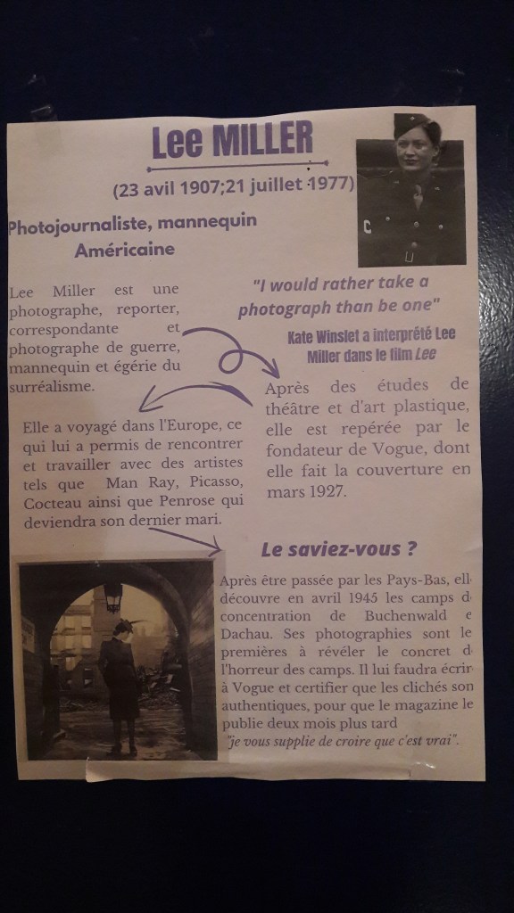 Chouette travail, je suis très contente de croiser tous les matins sur ma porte une femme dont (honte à moi !) j’ignorais tout jusque là ! Sympa ce petit quizz, heureusement que j’ai vu l’expo !