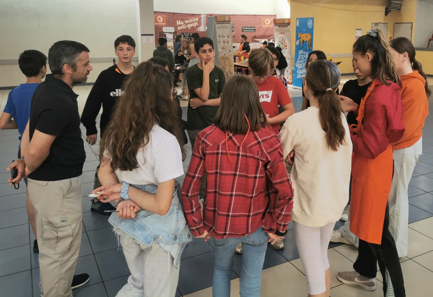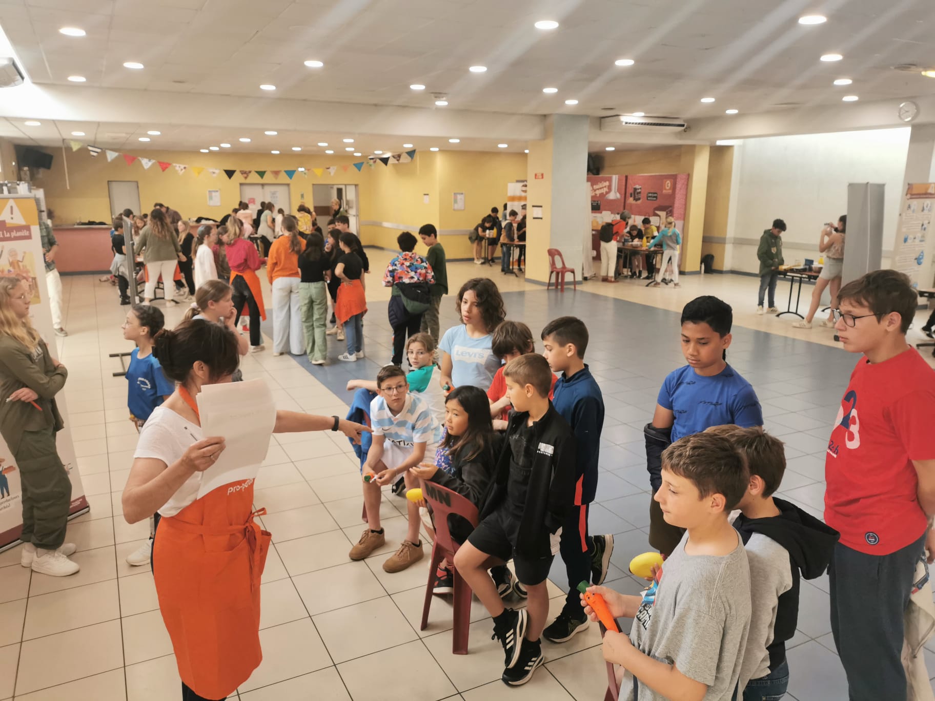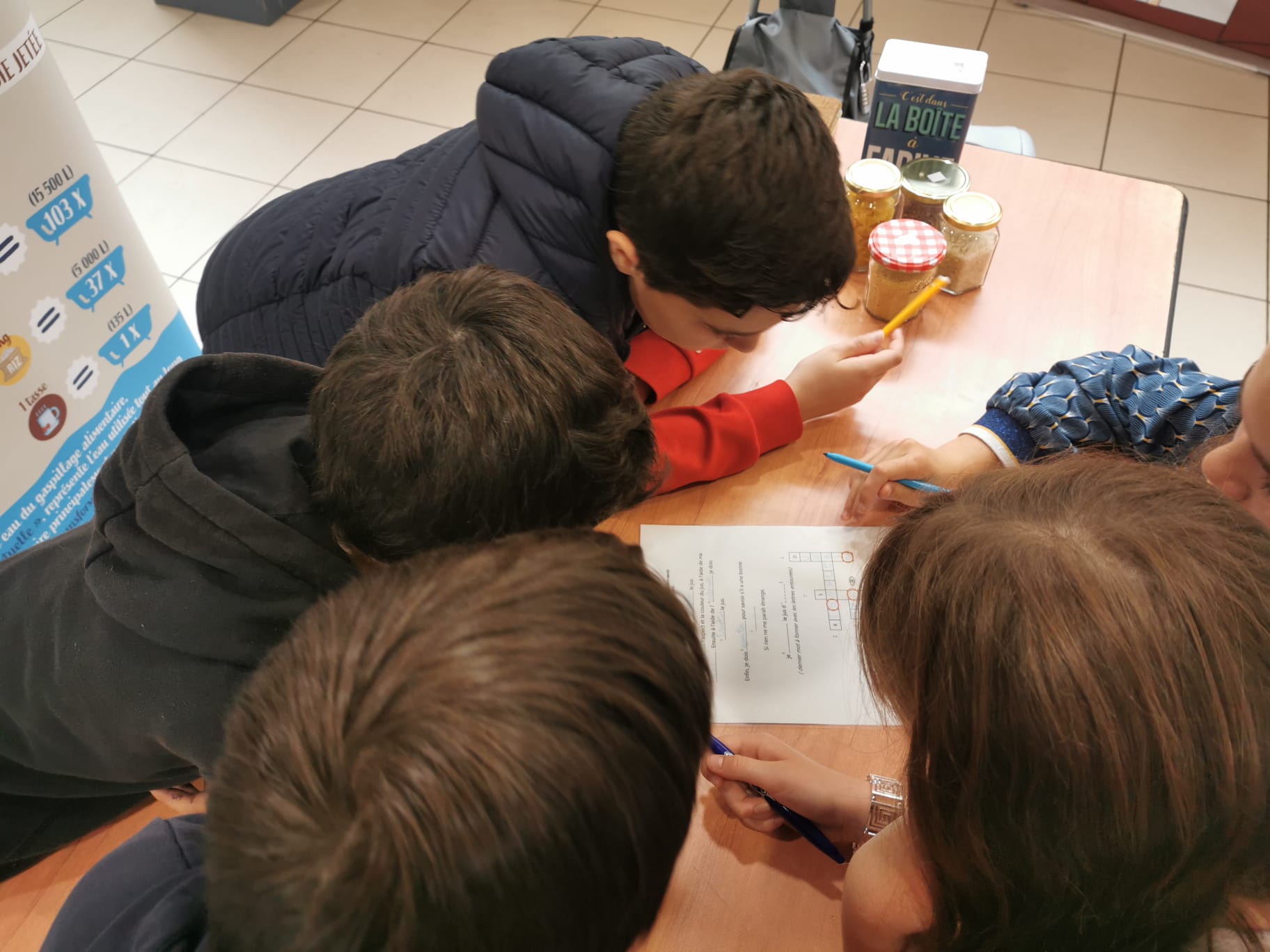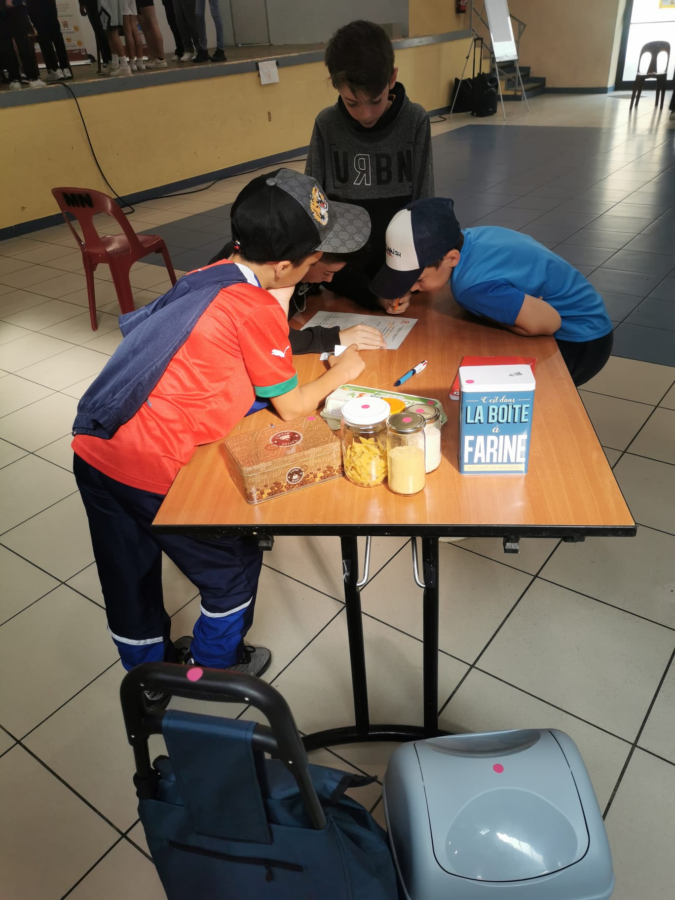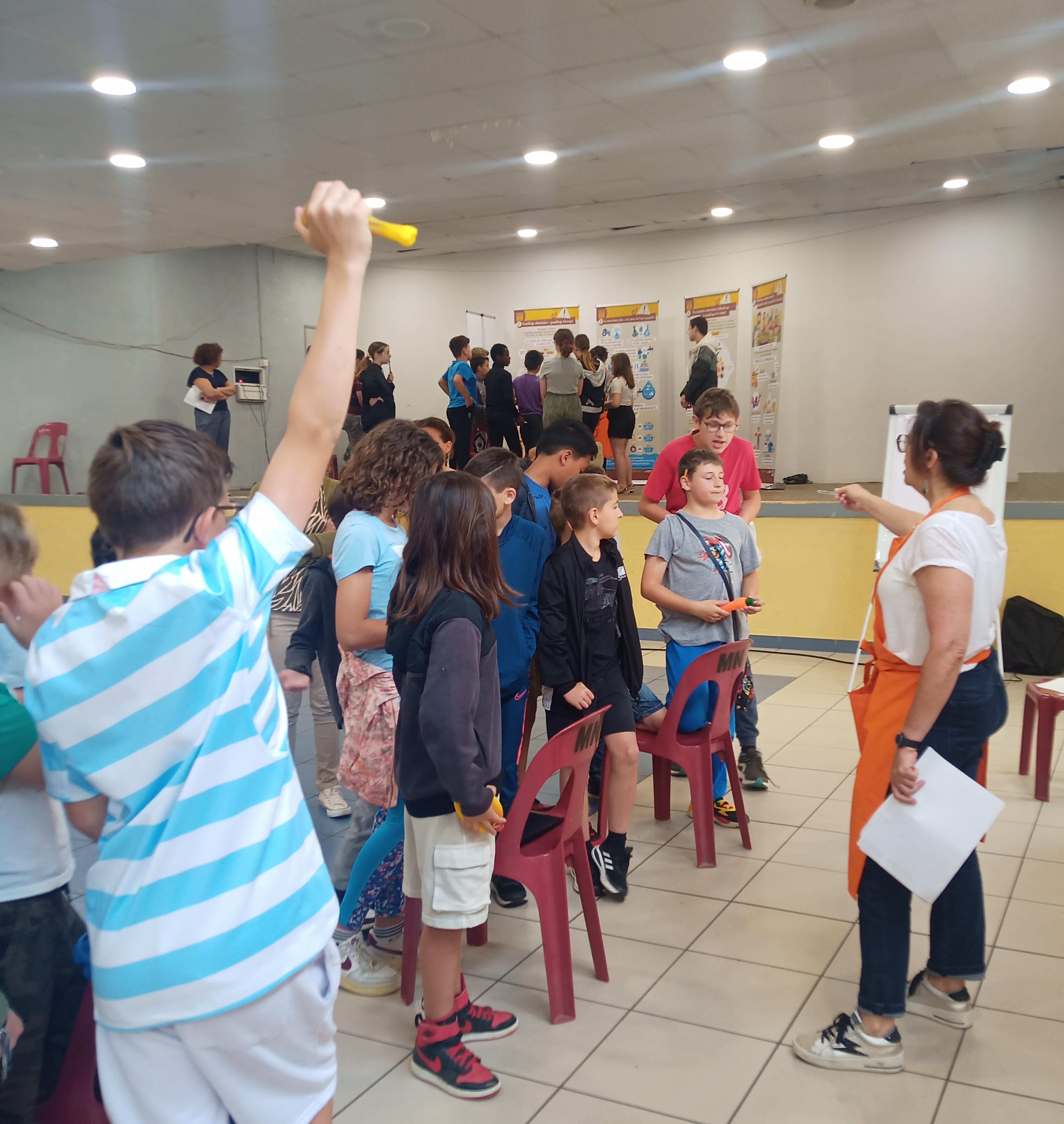 – Dans le dernier atelier, on avait des buzzers et on devait répondre à des questions sur l’alimentation en s’aidant de panneaux informatifs (ex : combien faut-il de baignoires remplies d’eau pour faire une baguette de pain?).