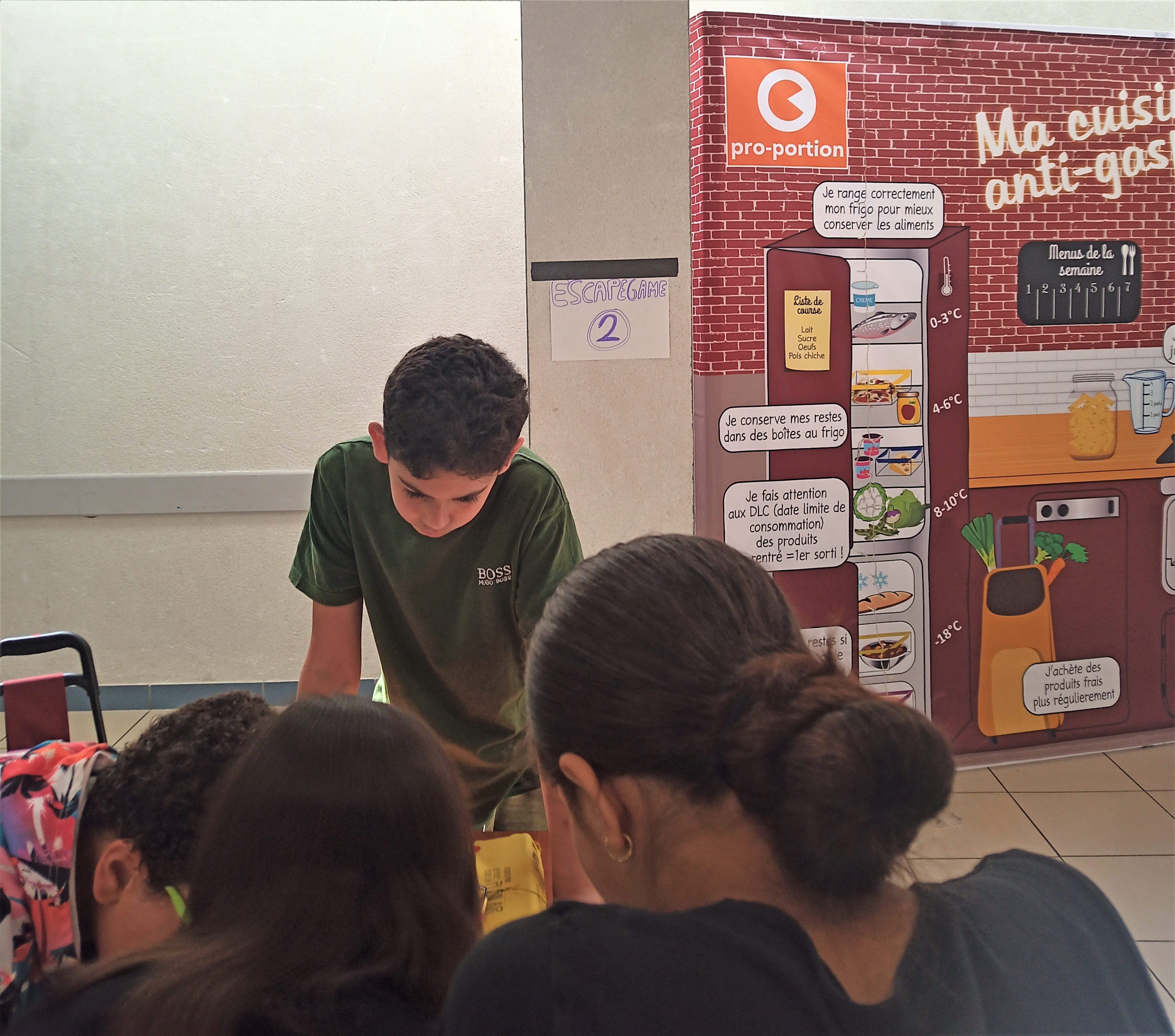 – Parmi les activités proposées (nous étions divisés en quatre équipes de « légumes »!), nous avons fait un escape game dont le but était de rallumer un frigo : des boîtes cadenassées contenant des indices sur les conditions de conservation des aliments et les dates de péremption permettaient de débloquer des piles pour le remettre en route… et de mieux comprendre comment conserver les aliments.