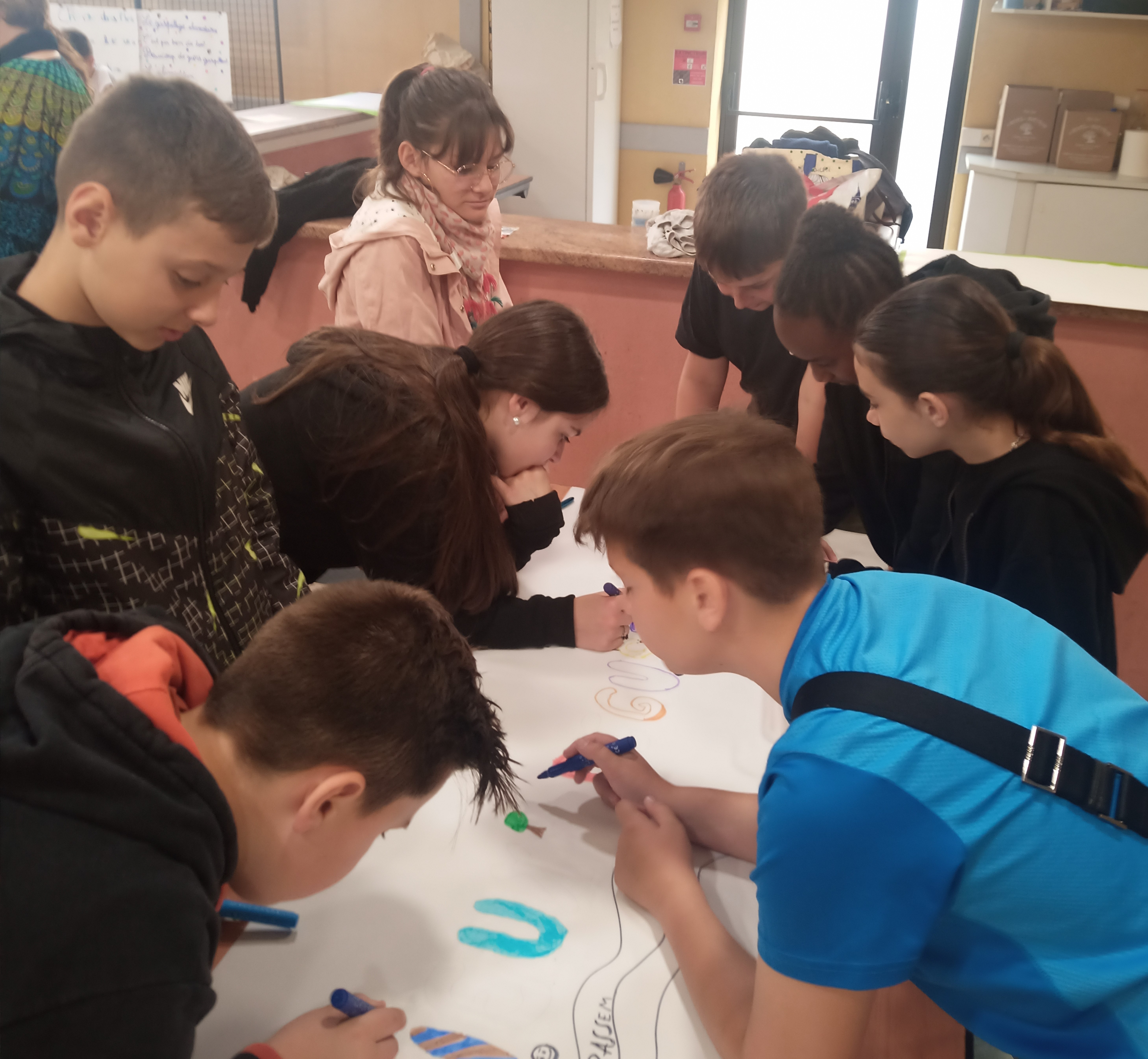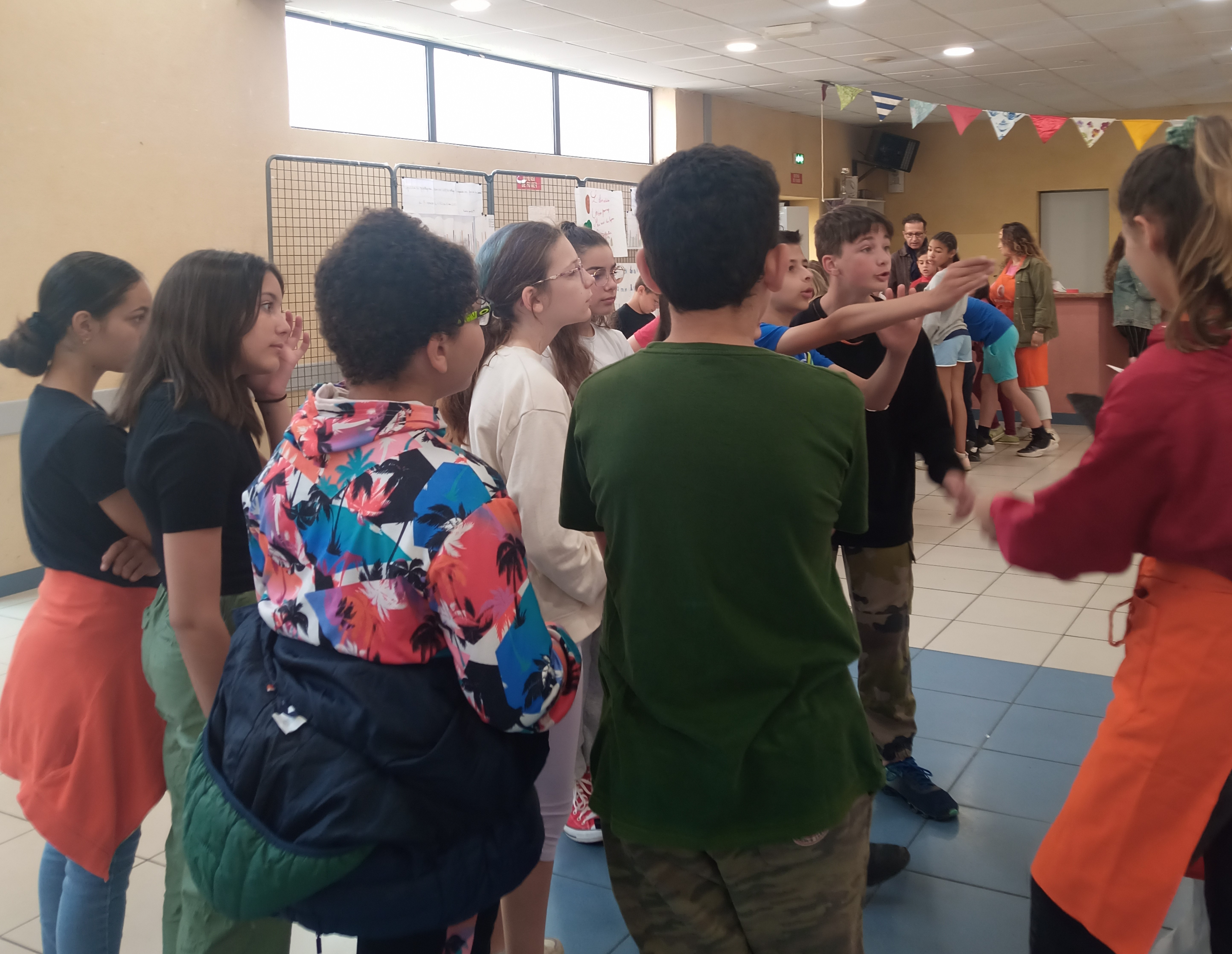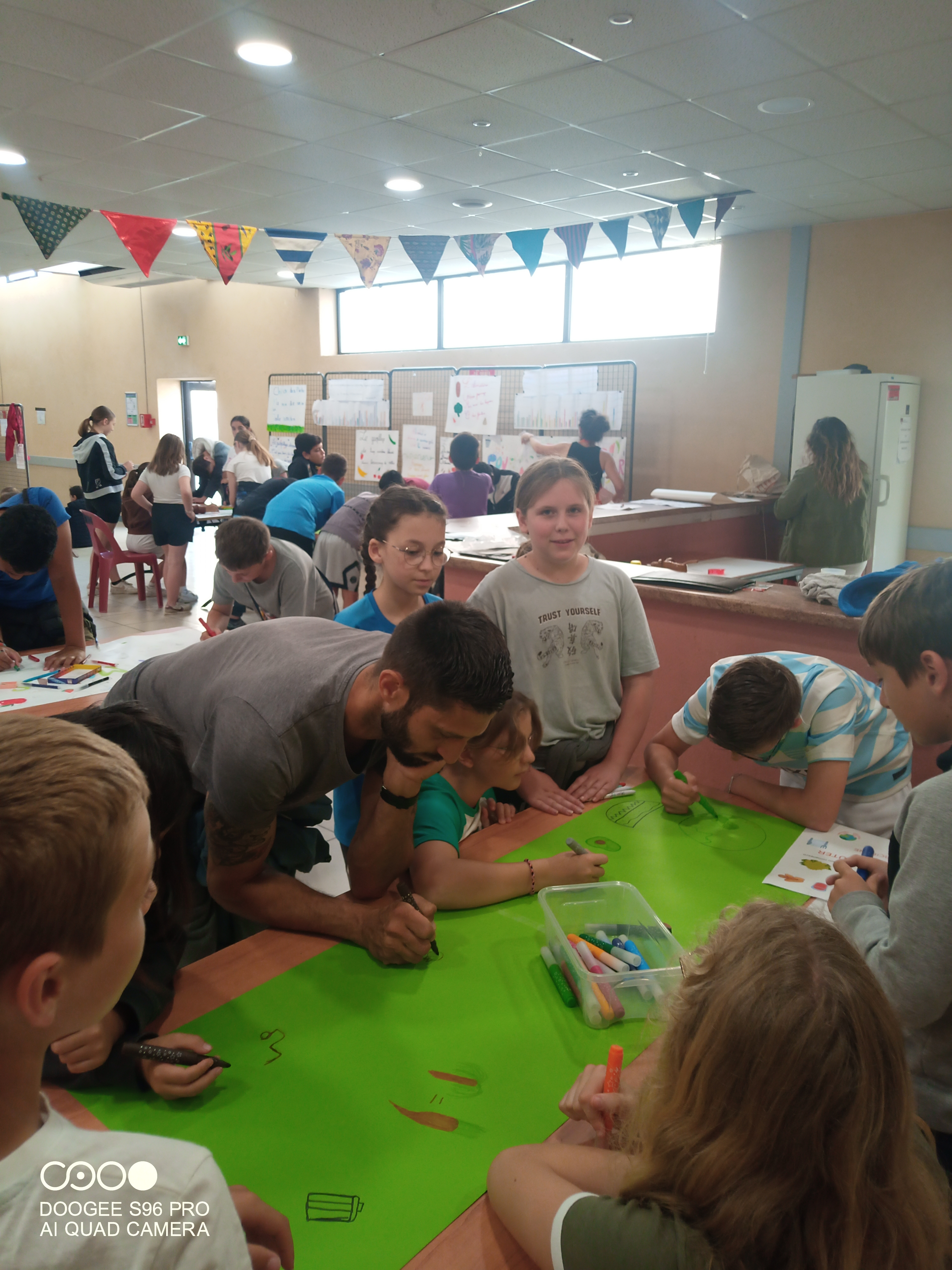 – Le troisième atelier était un « gaspille-up » : on avait des cartes représentant des objets, des métiers, des lieux, des aliments qu’on devait faire deviner aux autres, par exemple en les mimant, comme dans un time’s up.