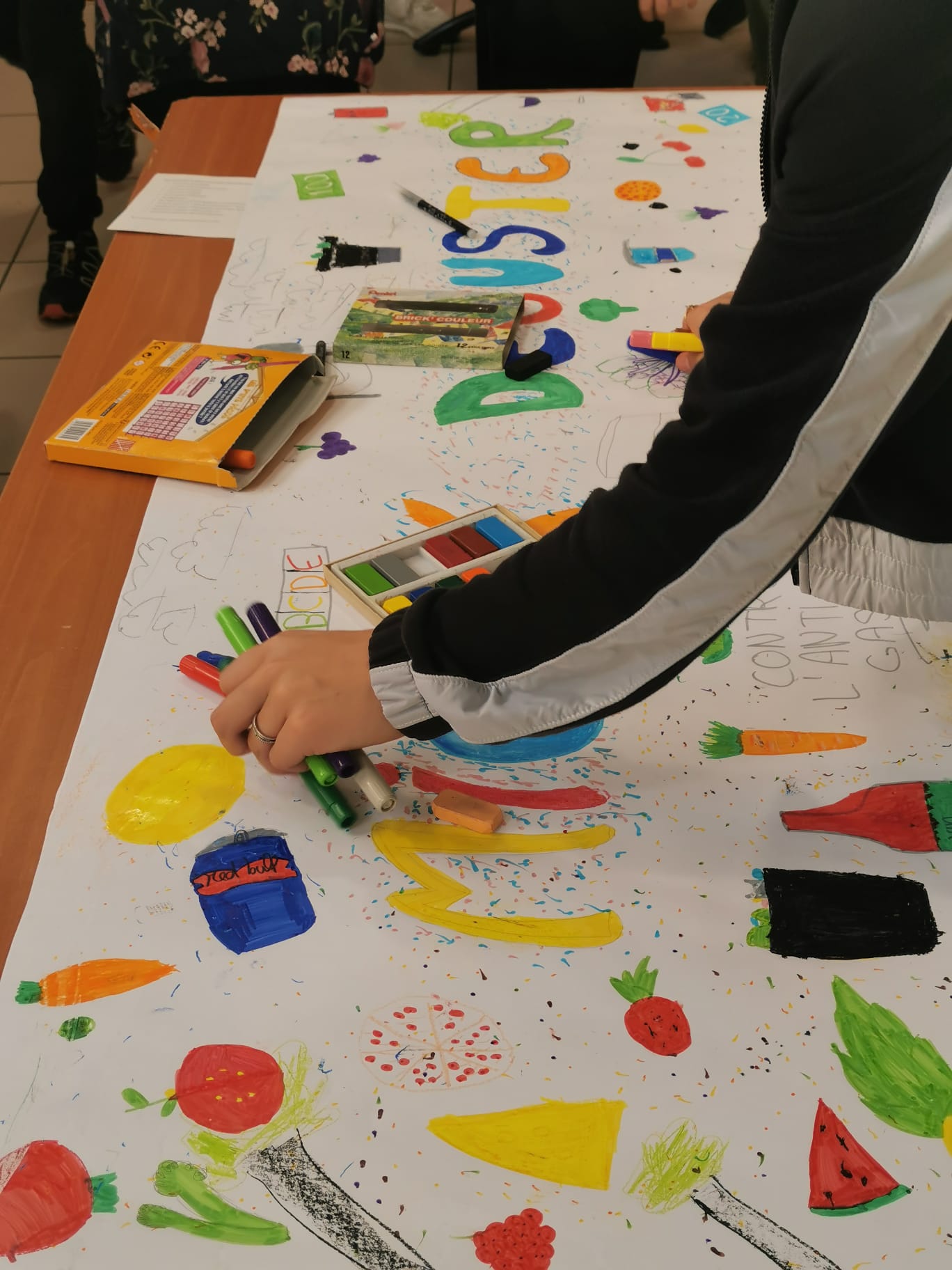 – Dans un autre atelier, on devait faire une frise anti-gaspillage en dessinant un élément de notre choix en rapport avec les ateliers précédents.