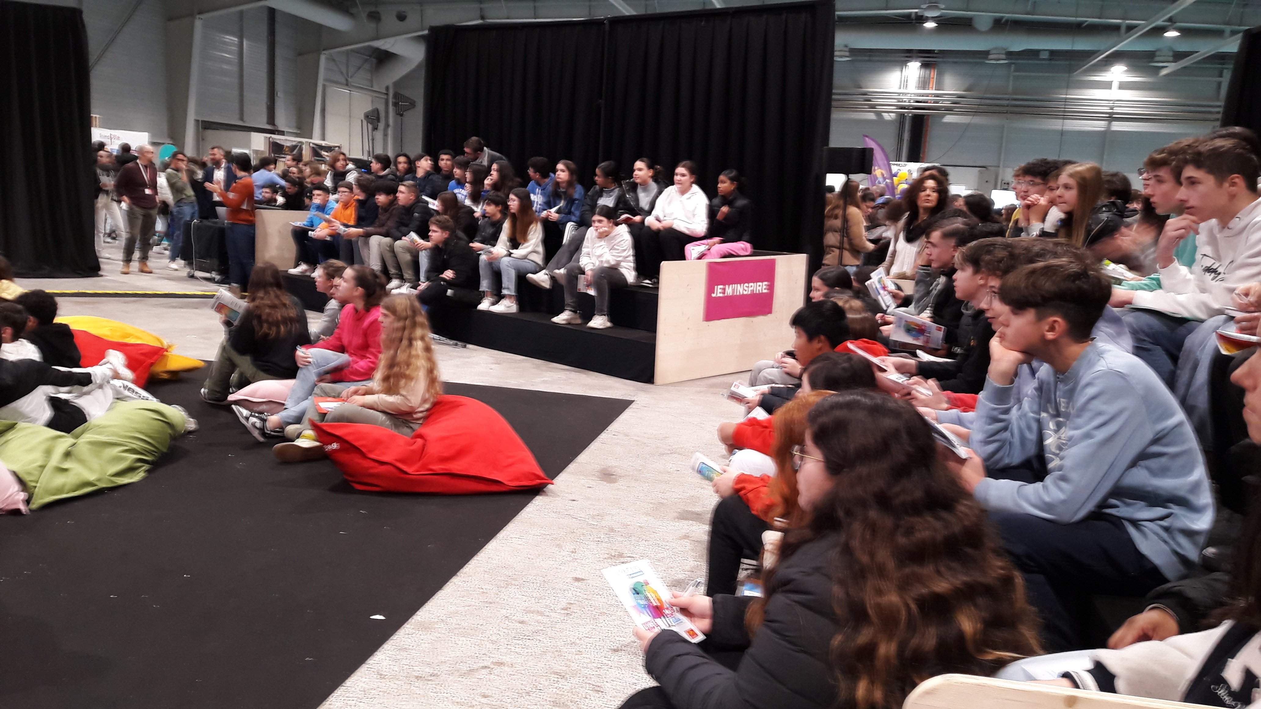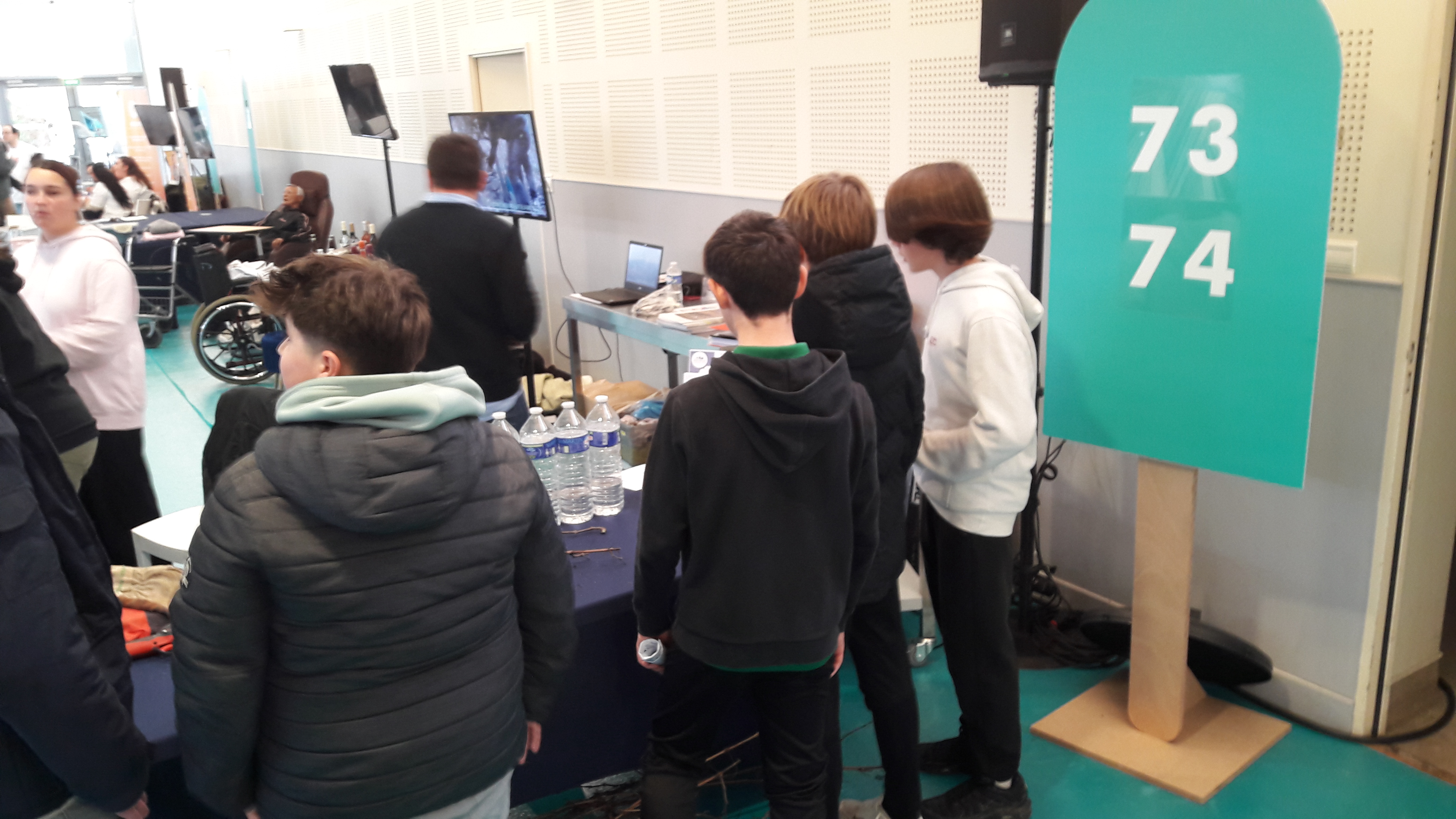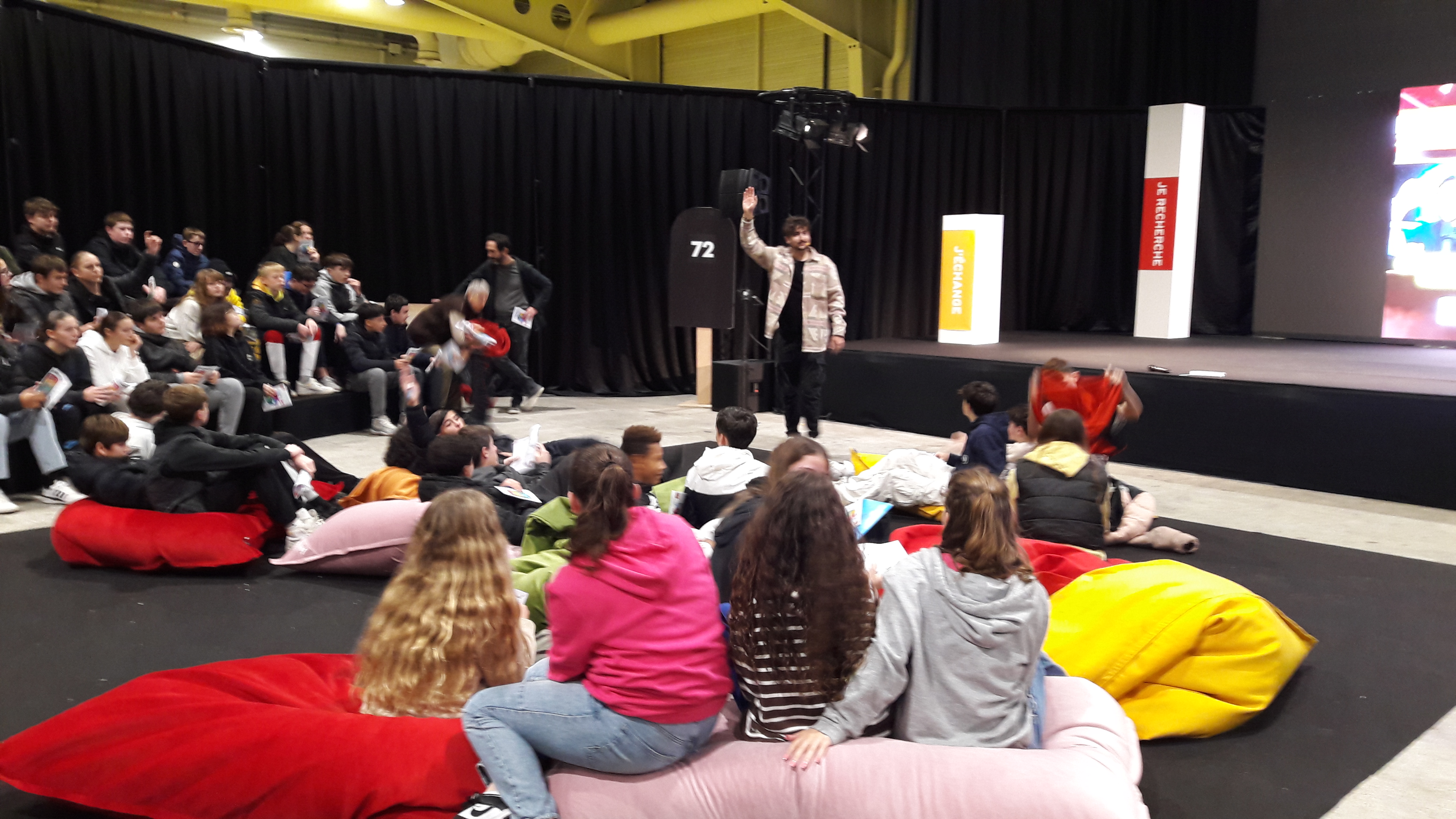 – Maxence, Élias et Enzo : « A l’entrée du salon, des personnes nous ont distribué un livret avec le plan du salon, les numéros des stands et un questionnaire. Puis nous sommes allés dans un mini amphithéâtre pour écouter Co6nus, un streamer sur Twitch. Il a interviewé Fernando Belisario, un réalisateur de film d’animation et professeur d’arts appliqués et de communication marketing. Il nous a raconté son parcours professionnel. Après cette rencontre instructive, nous nous sommes promenés entre les stands. Personnellement, je me suis intéressé aux métiers du paysage et des espaces verts. Puis je suis allé dans le cube de réalité virtuelle et j’ai aussi participé à un atelier de réactivité au stand des métiers de l’animation. » Maxence.
