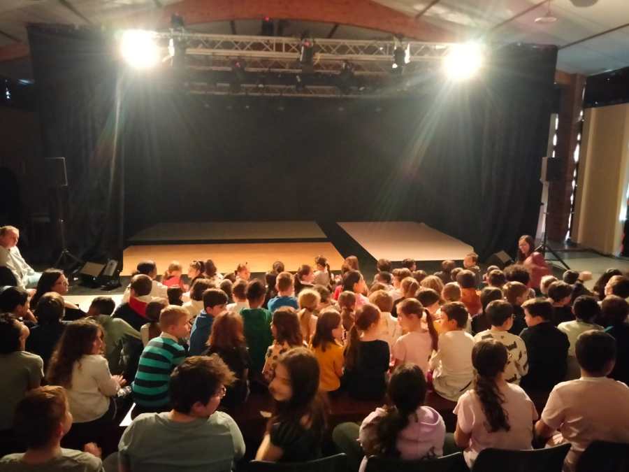 Vendredi 22 mars, nous avons fait la première partie d’un spectacle de danseurs professionnels, Bryan, Zoé et Yane de la compagnie Carré blanc , à Bioule.