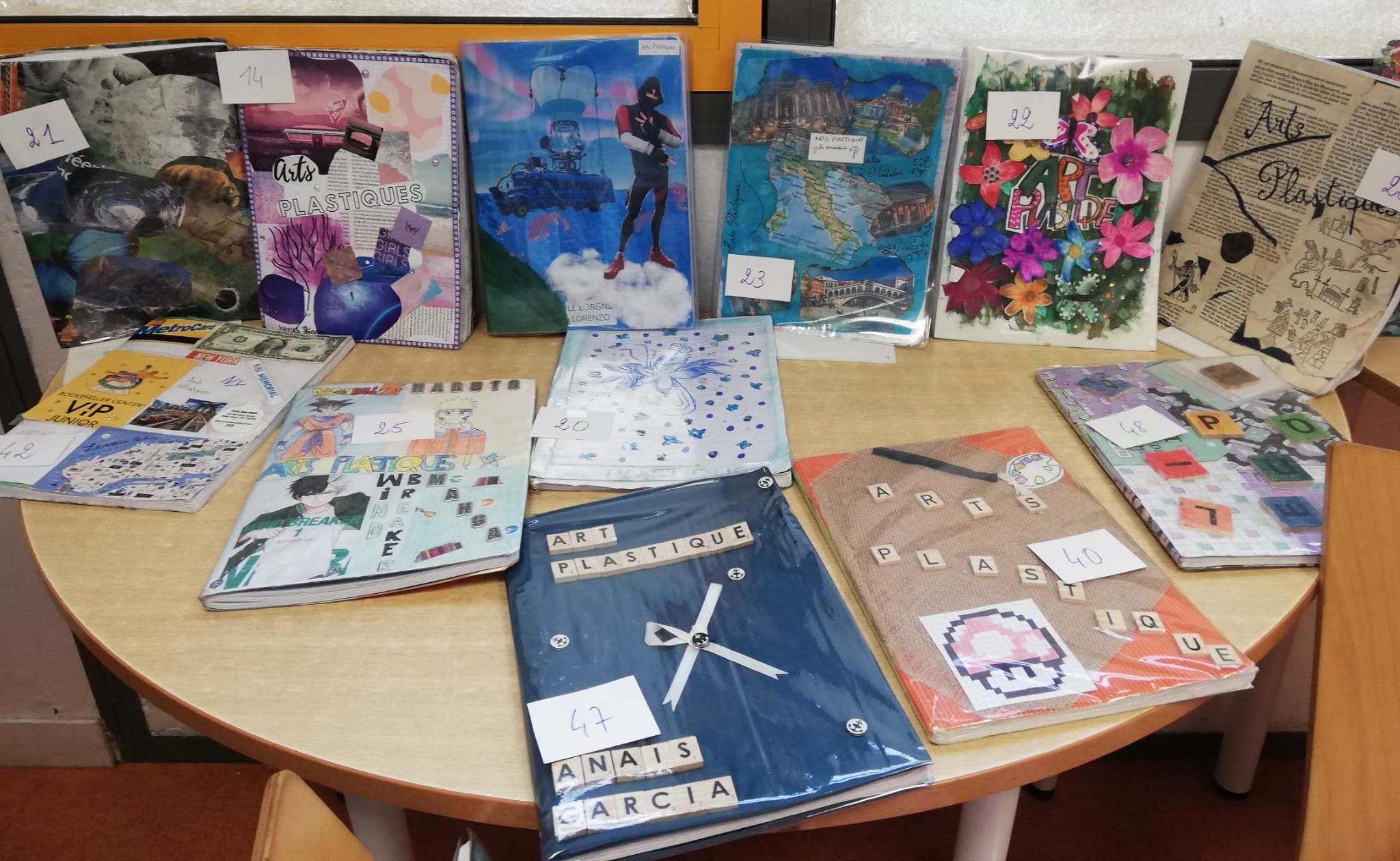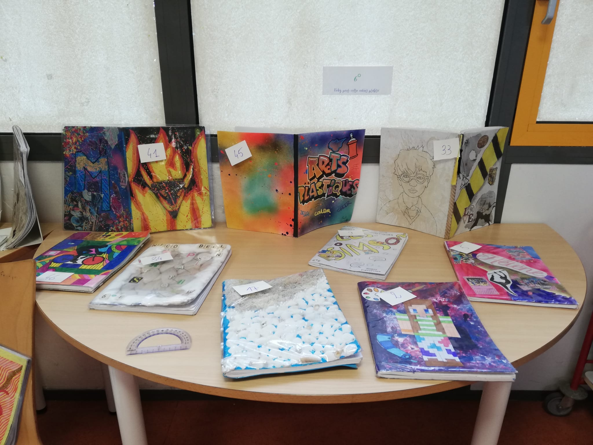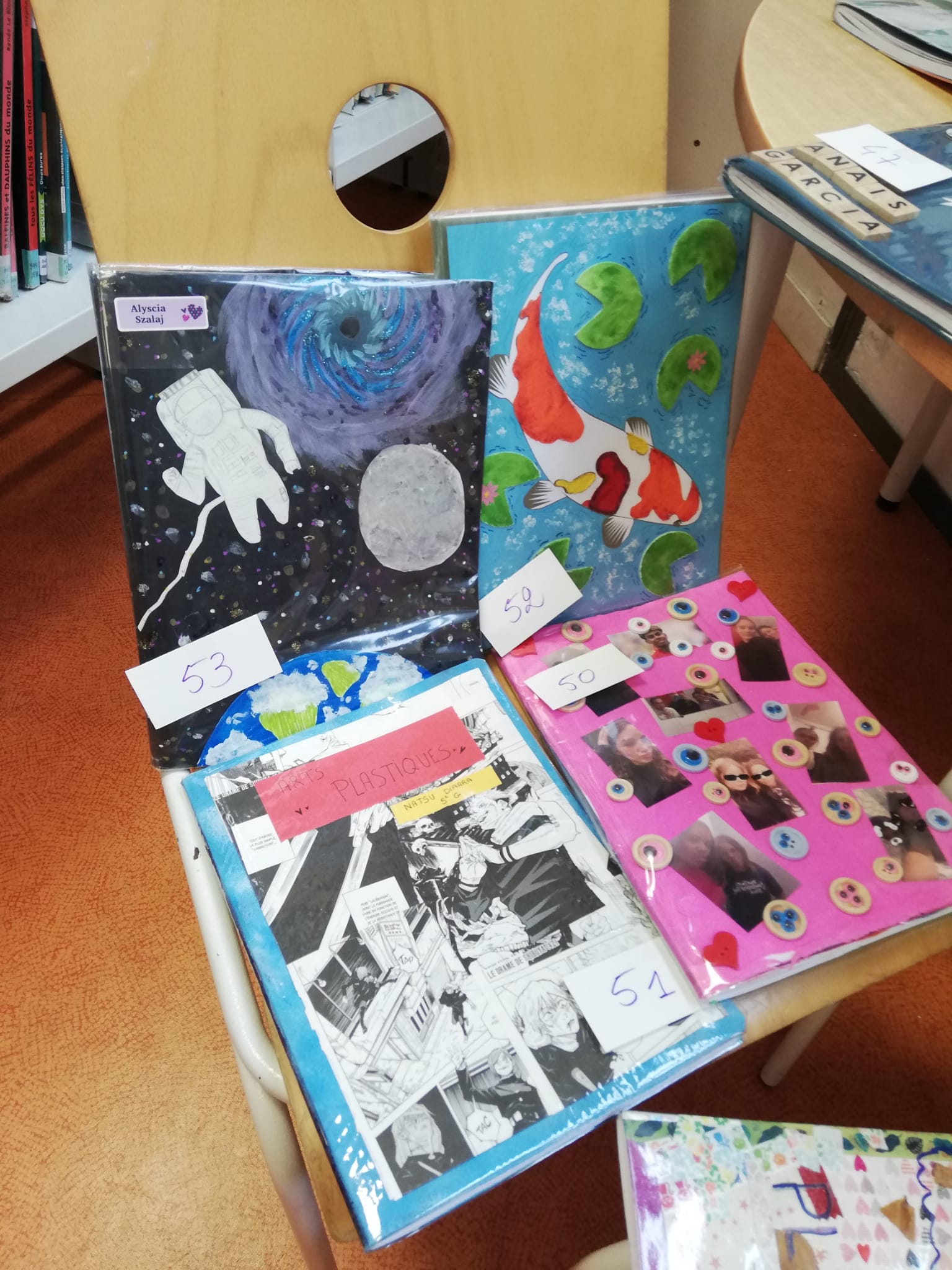 Vendredi 15 octobre, le CDI a accueilli les gagnants du concours d’arts plastiques organisé par Mme Leporati et M Verstraeten. Il fallait transformer son cahier d’arts plastiques en cahier d’artiste, en recouvrant entièrement la couverture devant et derrière tout en variant les techniques, les outils et les matières. Trois ou quatre cahiers par classe ont été sélectionnés, soit en tout 65 cahiers.