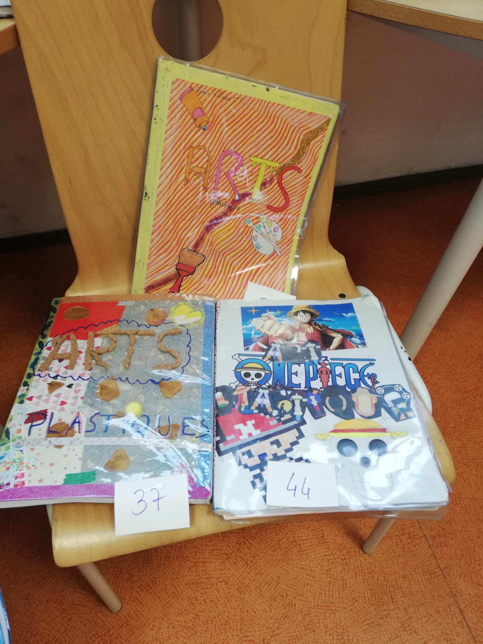 « J’avais demandé aux élèves de transformer leurs cahiers d’arts plastiques en cahiers d’artistes. Il fallait varier les techniques, les matières et les outils. La couverture entière du cahier devait être recouverte. C’est un travail maison sur le long terme, un mois de réalisation pour nos graines d’artistes qui ont su prendre le temps de créer, de se saisir des idées des copains, de faire des essais et de remanier leurs créations. Chaque cahier est unique : des voyages, du manga bien sûr, des textures, de la couture, des photos, des dessins, de la peinture… Nos élèves sont allés loin chercher leur inspiration. Je remercie tout spécialement mon collègue M. Verstraeten pour son enthousiasme envers ce projet, et pour avoir préparé des lots de si riche quantité et variété, pour la préparation de l’espace d’exposition au CDI et l’encadrement des votes. C’était une joie de mettre en valeur et de récompenser ces si belles créations ! »