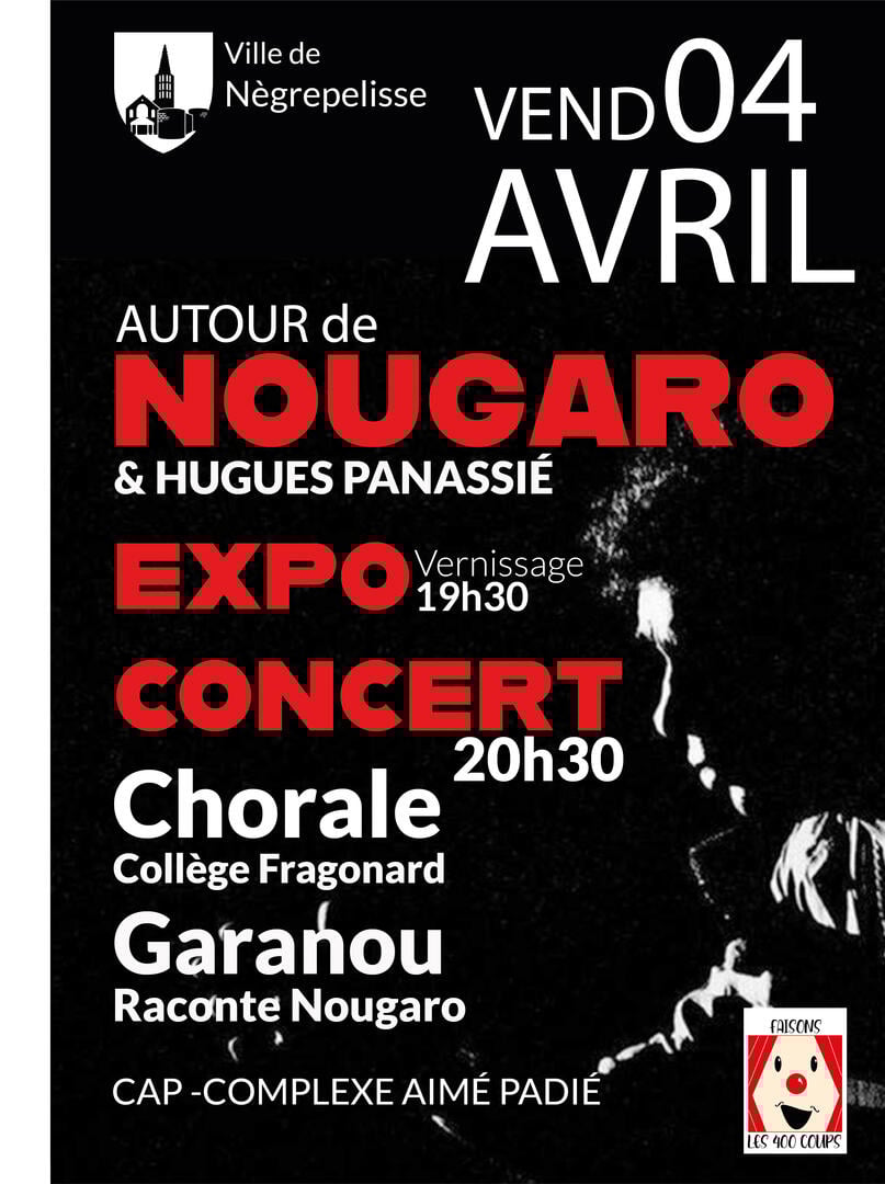 Le vendredi 4 avril le groupe Garanou et la chorale du collège vous proposent un spectacle inédit autour de Claude Nougaro à partir de 20 heures 30 à la salle Aimé Padié.
