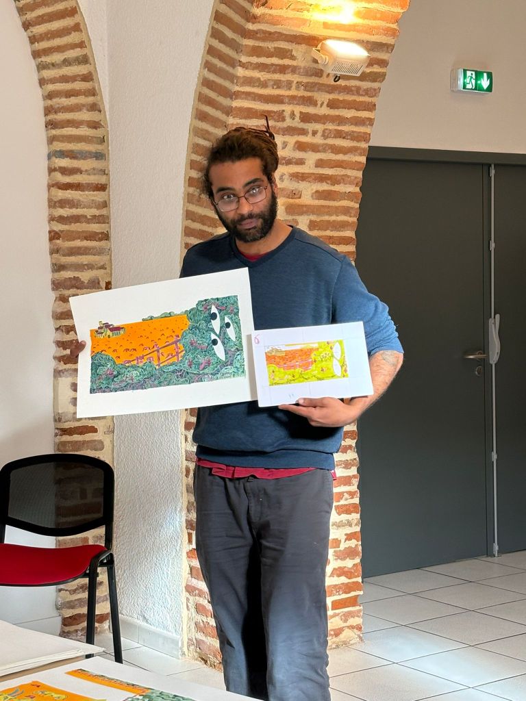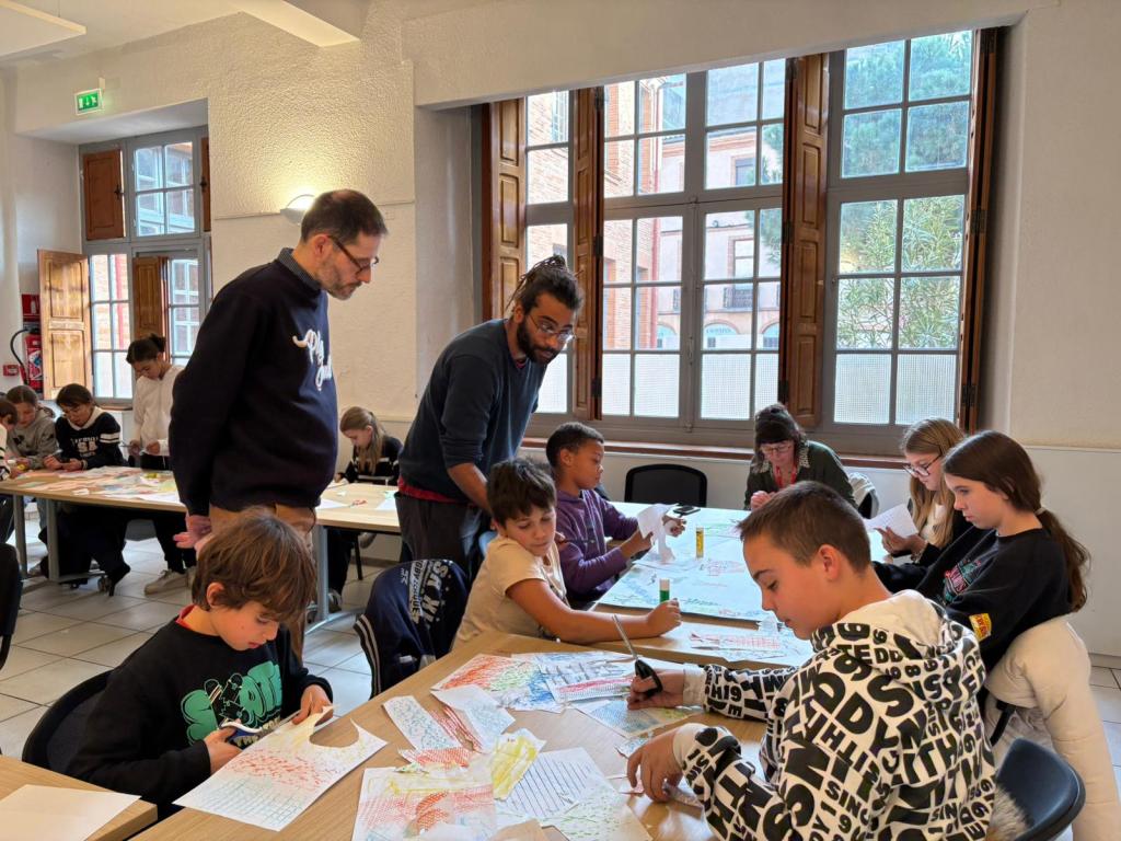 L’après-midi du jeudi 20 novembre 2025, accompagnés par notre professeur de français, M. Foletto, et notre professeure d’arts plastiques, Mme Henric, nous sommes allés à l’Ancien Collège à Montauban pour participer à un atelier avec l’illustrateur KAM dans le cadre du festival Lettres d’Automne.