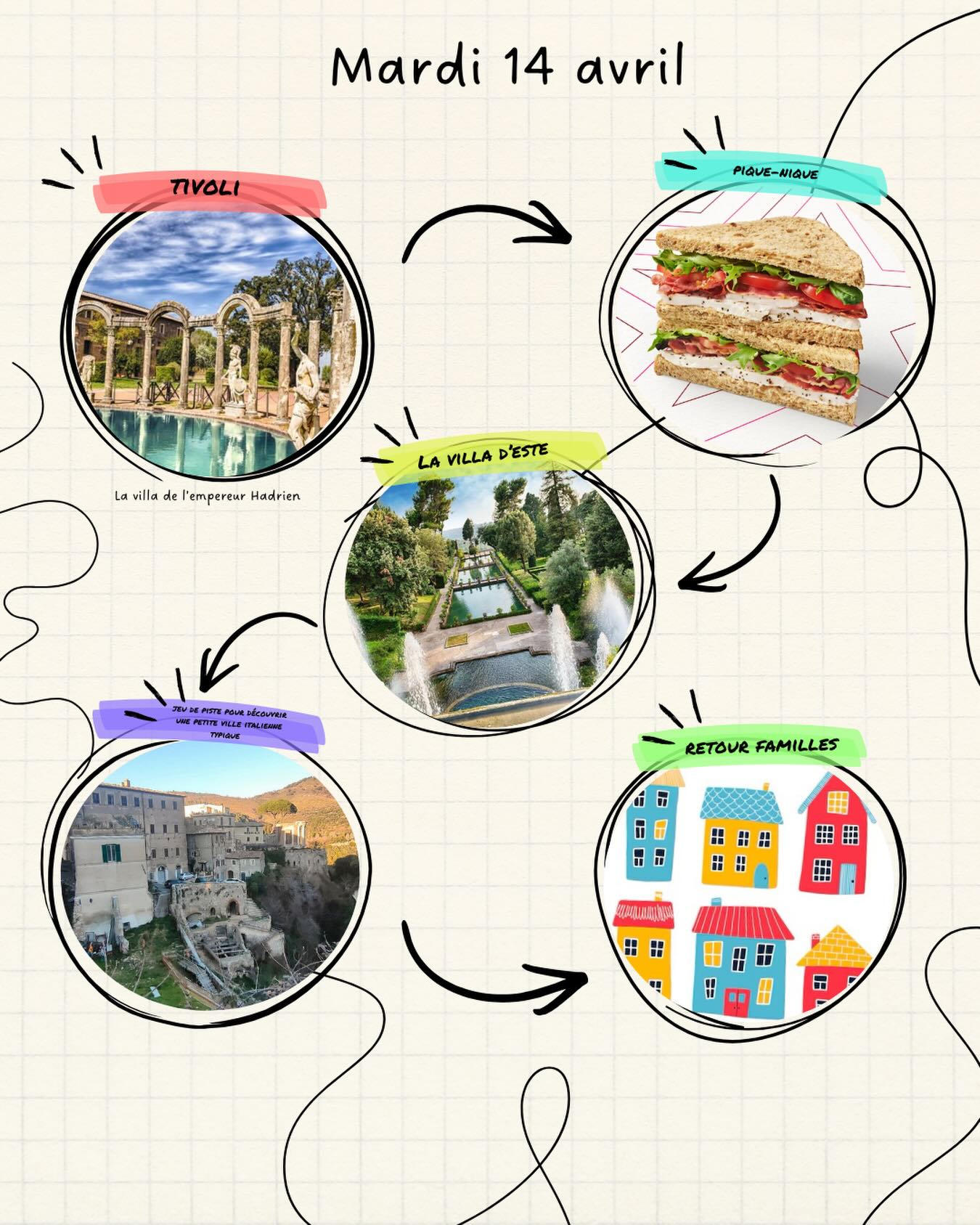 Une fois notre promenade au milieu de la végétation, le groupe s’est scindé en deux groupes : un premier s’est baladé librement dans Tivoli, ville italienne typique, tandis que le deuxième l’a découverte à travers un jeu de piste pour gagner une glace gratuite.
