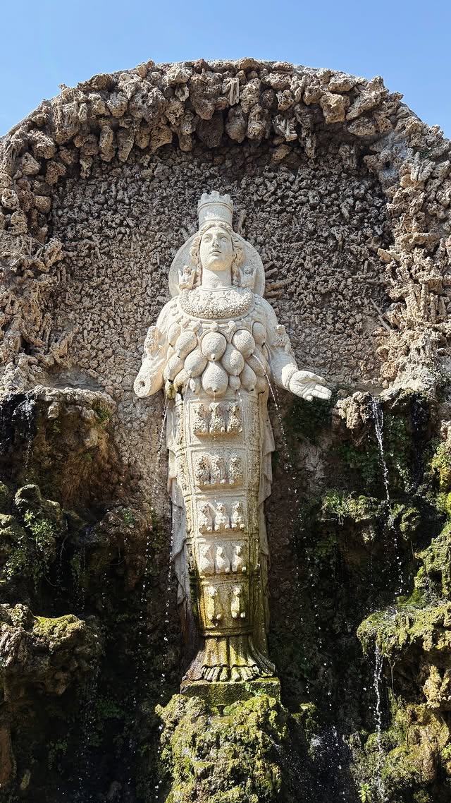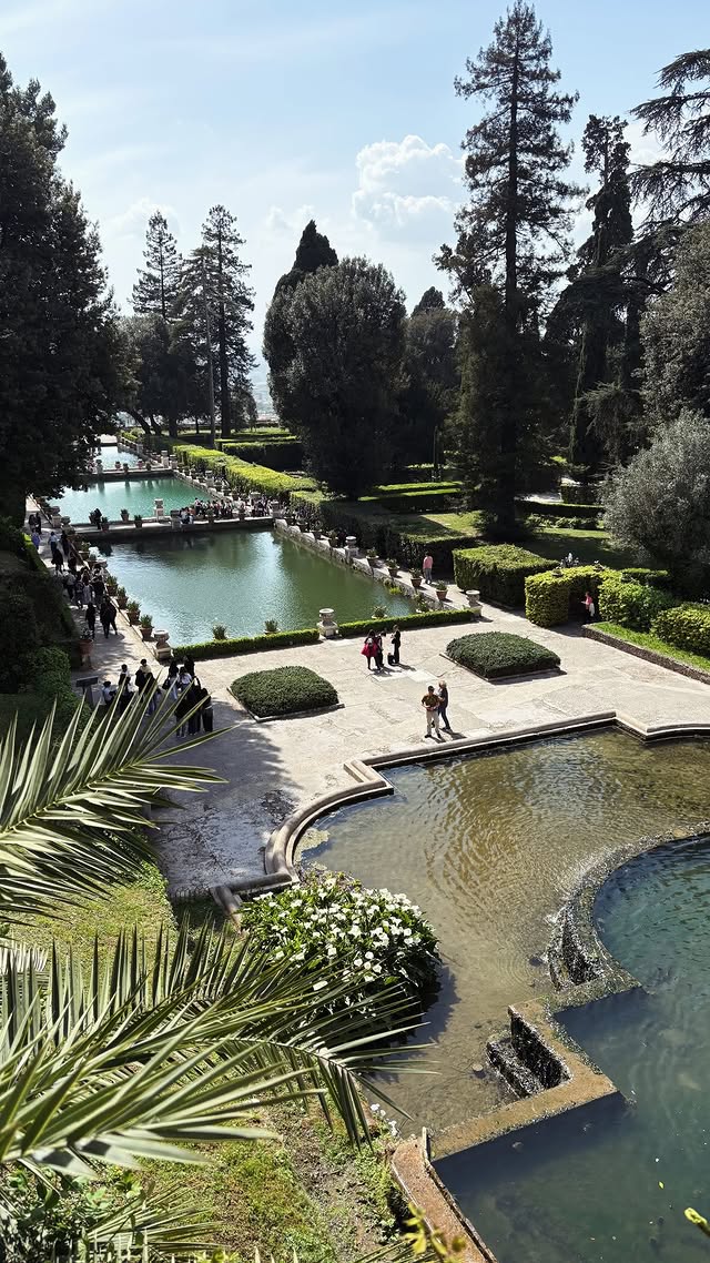 Puis, nous sommes repartis pour la ville de Tivoli où nous avons tout d’abord visité la très modeste et peu excessive Villa du cardinal Este, avec ses magnifiques fresques murales et plafonds et surtout, son somptueux jardin aux 100 fontaines (et au moins 80 escaliers) très verdoyant.