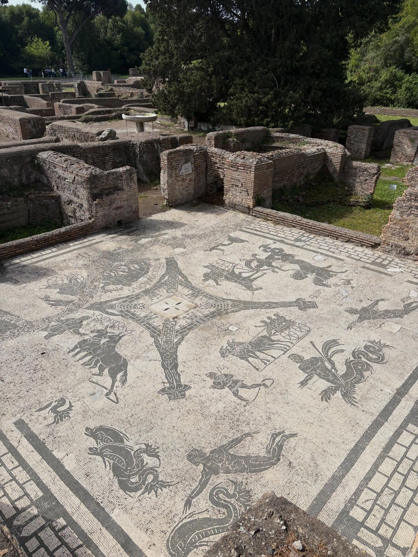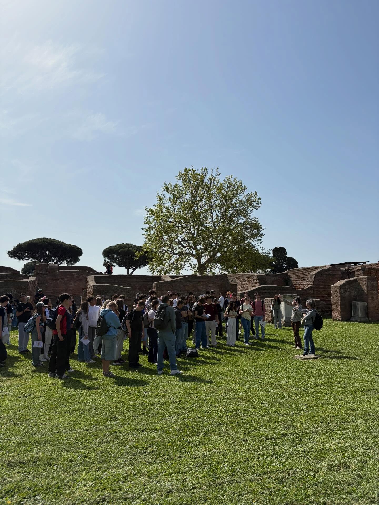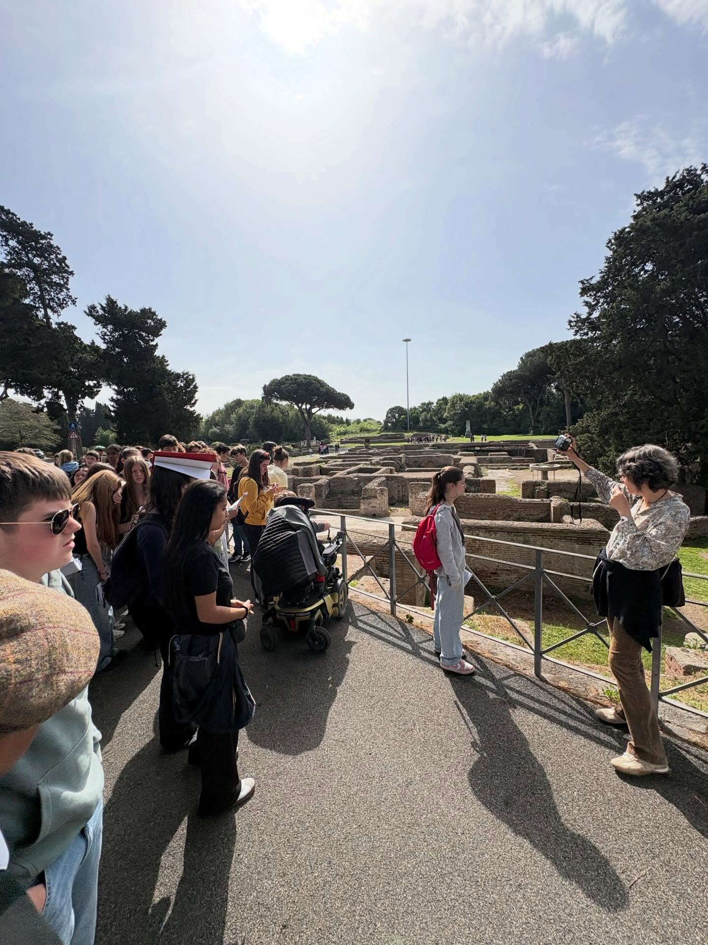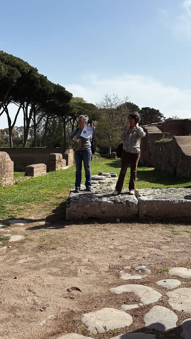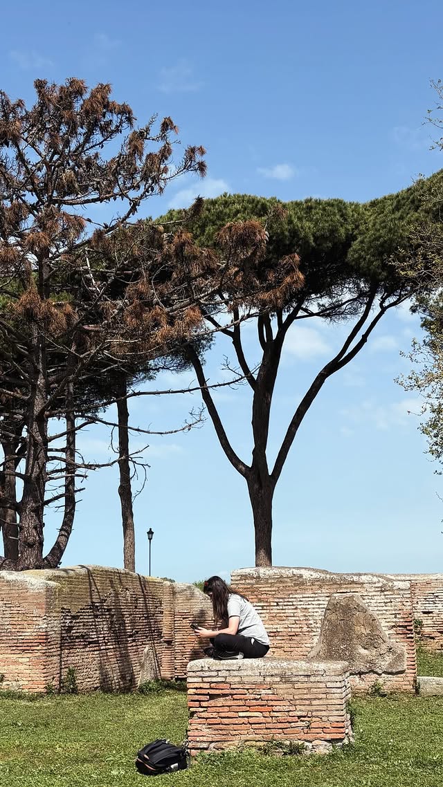 Quatrième jour en Italie, et nous avons aujourd’hui quitté Rome pour rejoindre la ville antique d’Ostie, plus proche de la mer. Nous avons librement déambulé dans les restes de cette ancienne cité portuaire, alternant entre jeu de piste au fil des monuments et mises en scène pour le défi photo du jour qui consistait à recréer une scène quotidienne des habitants d’Ostie, sous un soleil de plomb.