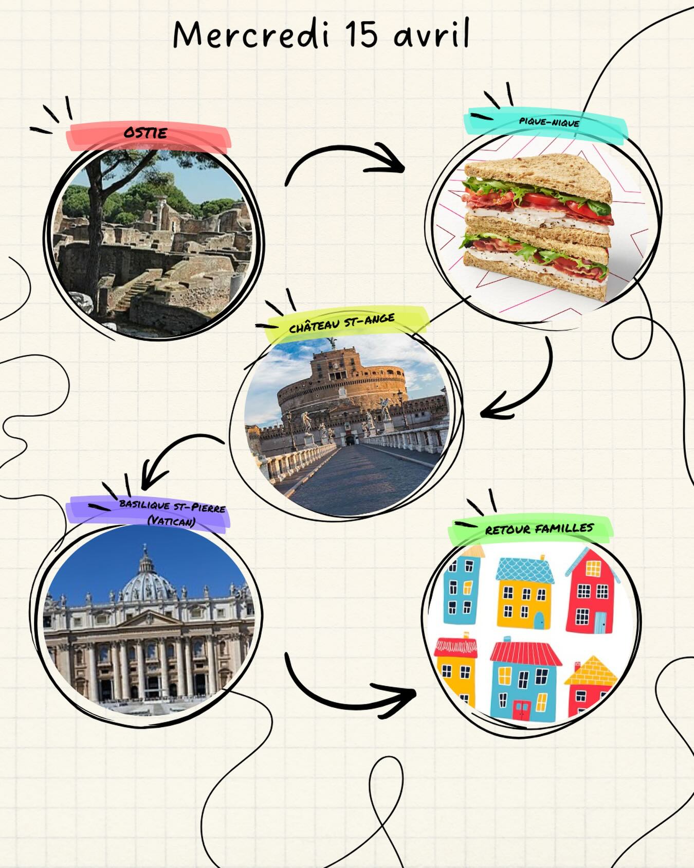 Finalement, nous avons fini cette journée imprévisible par une calme escale au musée de l’Ara Pacis et avons retrouvé les familles, trempés, lessivés, mais toujours avec le sourire !
